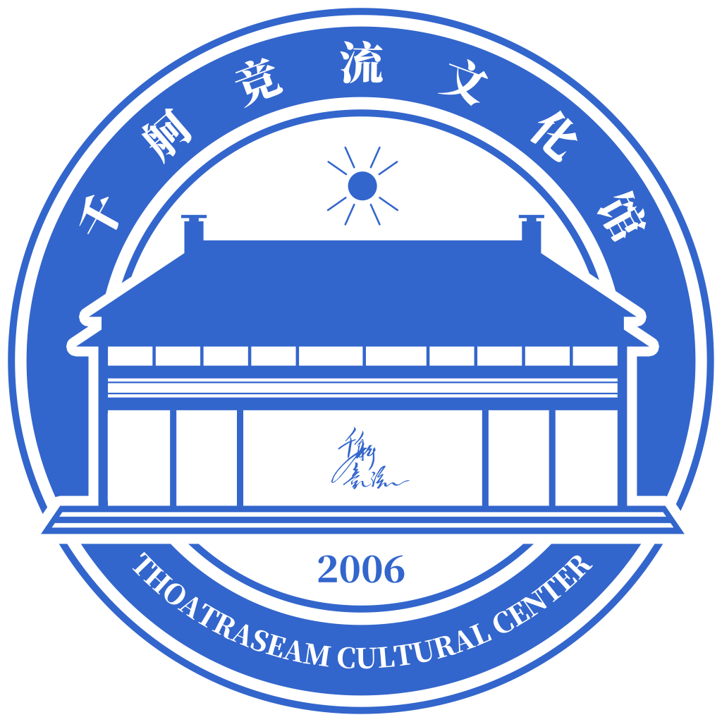 【馆徽介绍】本馆馆徽主体是一个建筑,其要素来自我家的老房子:两个正脊的装饰取自房子顶上的;屋顶下十个镂空处是房子的窗户,中间两个宽一点也是照着房子设计的;中间的横条纹取自房子的装饰;下侧左右各两处镂空,取自房子的两个门;底部两处镂空,取自房子的两个台阶。正中的“千舸竞流”代表我自己。建筑上的圆和八根射线代表我头像中的朝阳;建筑下的2006代表我的出生年份。上方“千舸竞流文化馆”是本馆的中文名,下方“THOATRASEAM CULTURAL CENTER”是本馆的英文名。