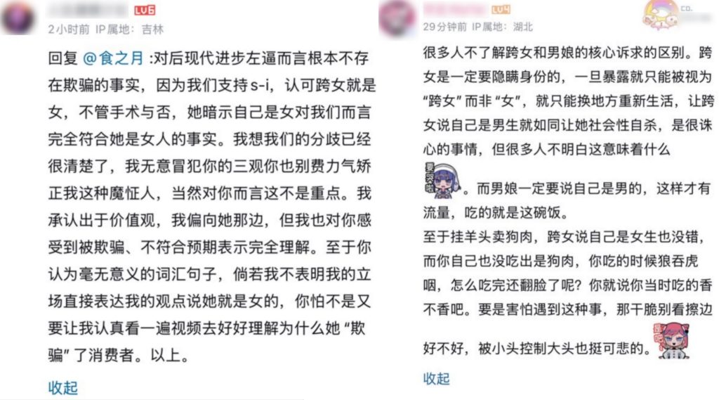 我从未想过欺骗任何人,我一直以来的认同就是女性,我也一直以女性的形象展现自己,作品里的画面也是女性形象的。我只是拼尽全力,做回真实的自己。