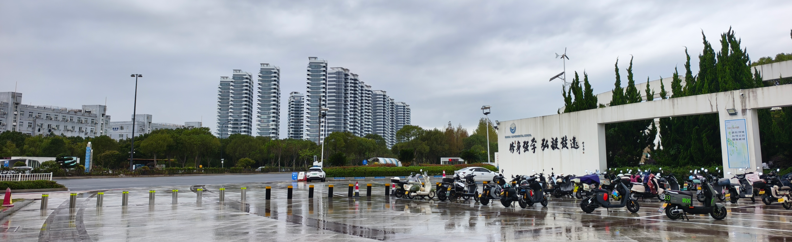 九点半结束之后,我打算去闪击南海(主要动机是去拍《南海兴学记》)。在鸥讯社台里待了一会之后,就坐高校专线坐到海运学院,在南海外面待了十多分钟,没进去。之后不想打车,就坐了快速公交坐到东门,又开共享电瓶车开回了学校。