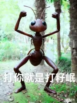 “打蚂蚁”一句其实跟一些黑历史[48]有关,不过现在更多地被解构成单纯用来调侃这张表情包的动作张力。籽岷本人接受甚至在该梗流行期间亲自玩了这个梗。籽岷教你零基础打蚂蚁 [1/1]